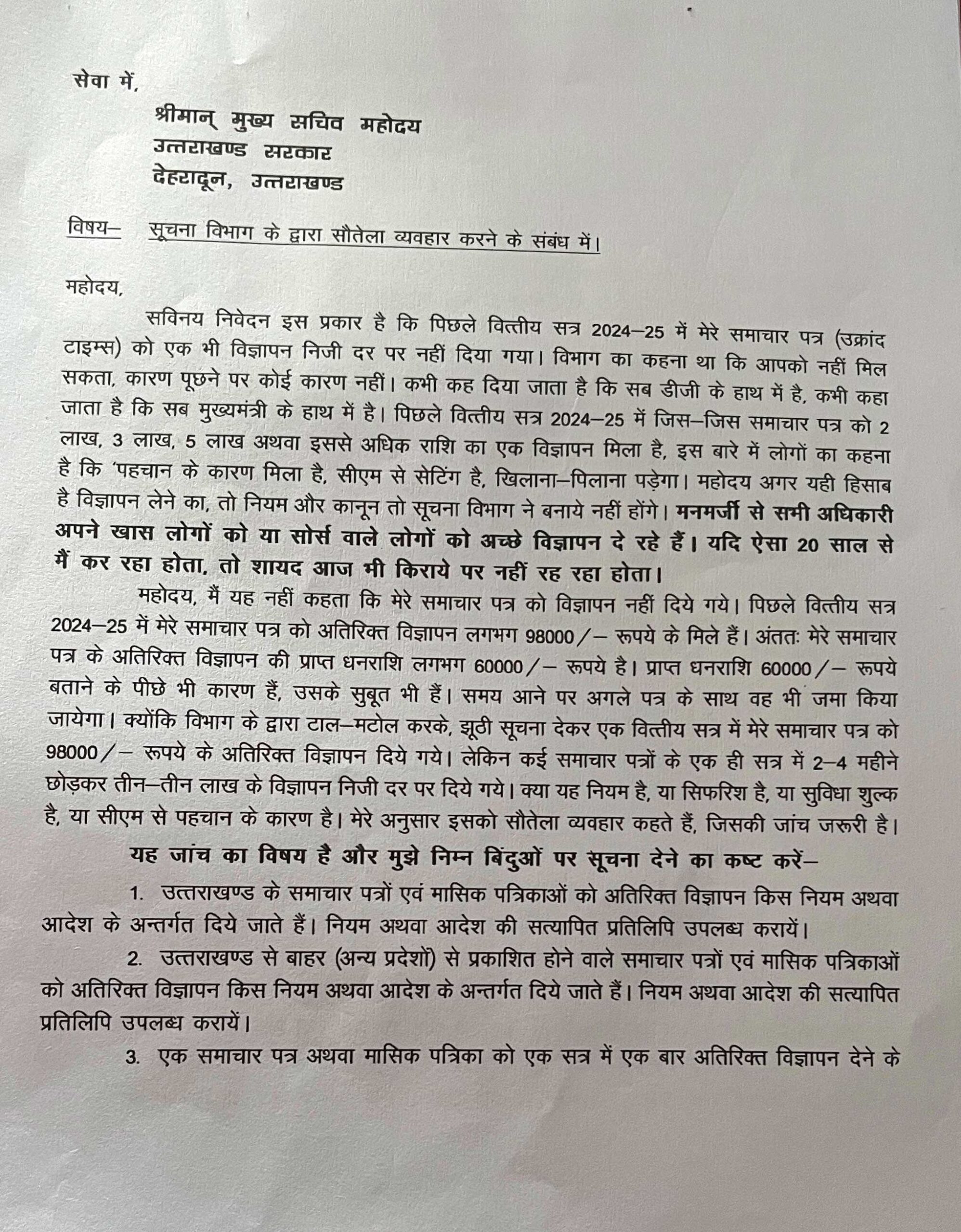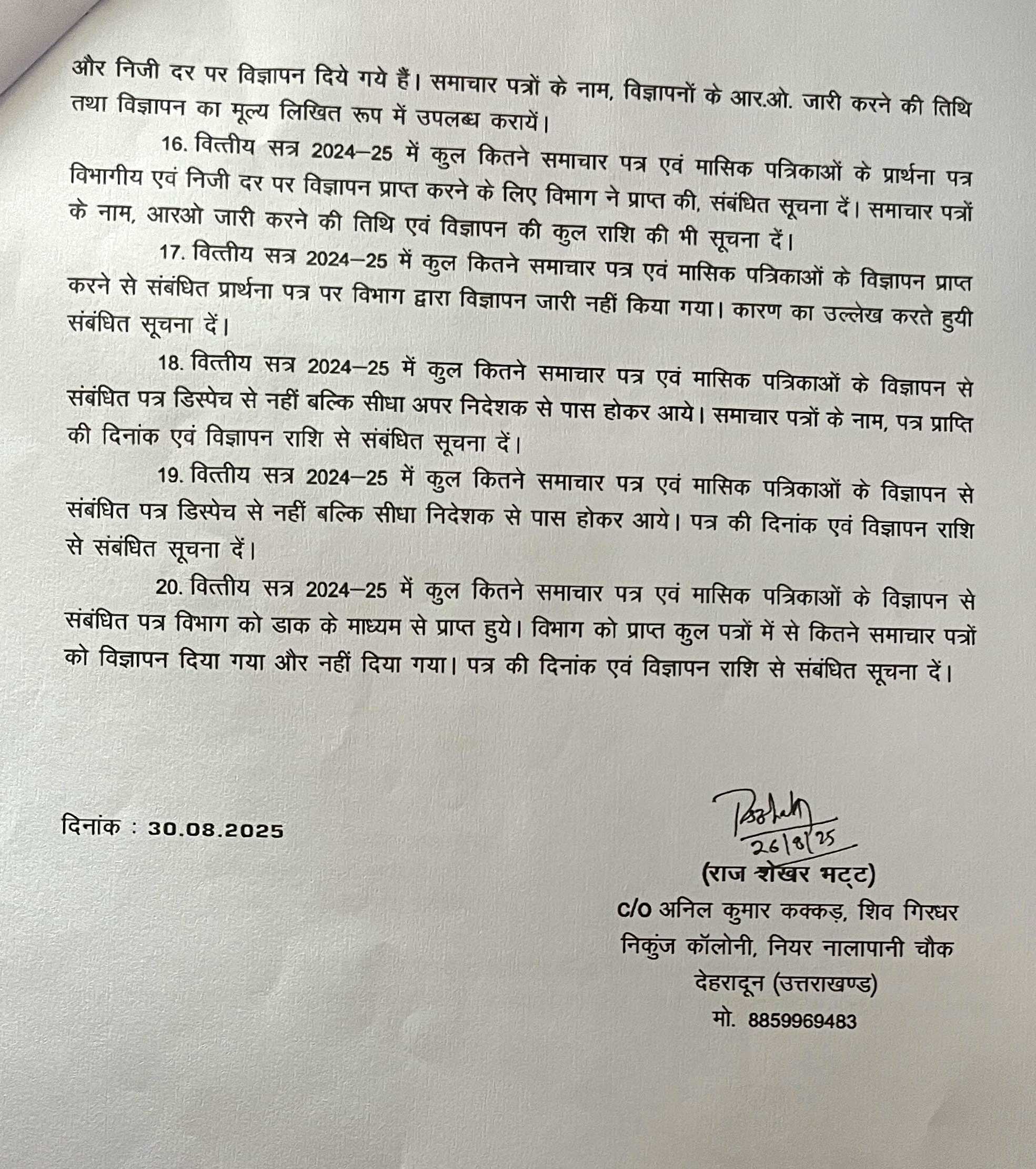 1. सरकार हर विभाग को बजट देती है ताकि वे जनता के पत्रों पर कार्यवाही कर संबंधित व्यक्ति को सूचित करें लेकिन पूरे कुएं में ही भांग पड़ी हुई हैं । पत्रों पर कार्यवाही तो दूर रही उन्हें पत्र की प्राप्ति तक की सूचना नहीं दी जा रहीं हैं । यह कैसी विडम्बना है । अतः पत्रों पर तत्काल प्रभाव से कार्यवाही की जाकर संबंधित को अवगत कराया जाये । चूंकि समस्या तो समाधान चाहती है न कि दलगत राजनीति ।