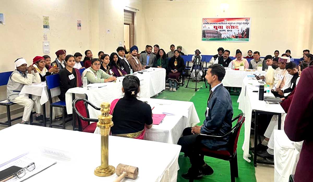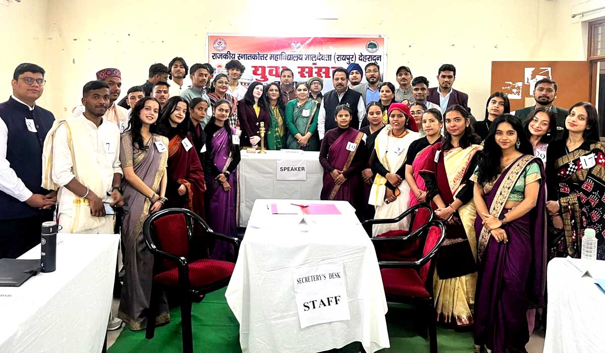 देहरादून। राजकीय स्नातकोत्तर महाविद्यालय मालदेवता रायपुर में संविधान दिवस के अवसर पर बुधवार को युवा संसद (तरुण सभा) 2025 का भव्य और सुव्यवस्थित आयोजन बड़े उत्साह के साथ सम्पन्न हुआ। निदेशक उच्च शिक्षा उत्तराखंड के निर्देशों के अनुसार आयोजित इस कार्यक्रम की अध्यक्षता प्राचार्य प्रो. विनोद प्रकाश अग्रवाल ने की, जबकि कार्यक्रम में राजकीय इंटर कॉलेज मालदेवता के प्रधानाचार्य डॉ. रमेश मैठाणी मुख्य अतिथि और प्राध्यापक संजीव सेनी विशिष्ट अतिथि के रूप में उपस्थित रहे। कार्यक्रम की रूपरेखा और संचालन की जिम्मेदारी नोडल अधिकारी सुश्री रीना ने निभाई, जिन्होंने अतिथियों, शिक्षकों और छात्रों का स्वागत करते हुए युवा संसद के उद्देश्यों और संविधान दिवस के महत्व पर विस्तार से प्रकाश डाला।